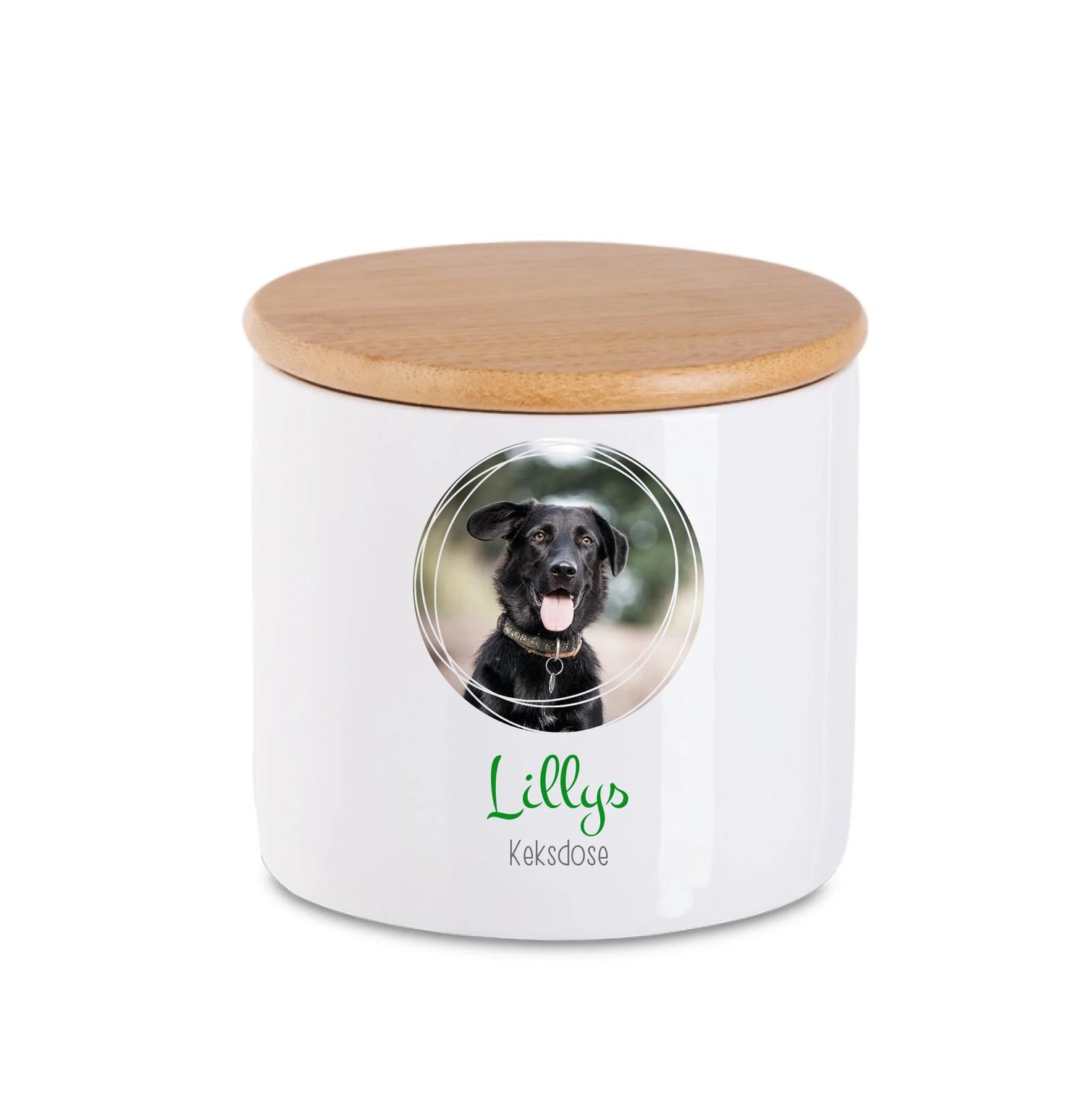 Stilvoll, hochwertig und mit Herz gestaltet: Unsere Vorratsdosen werden mit dem Namen und Foto deines Hundes bedruckt – für einen ganz persönlichen Platz für Lieblingssnacks.